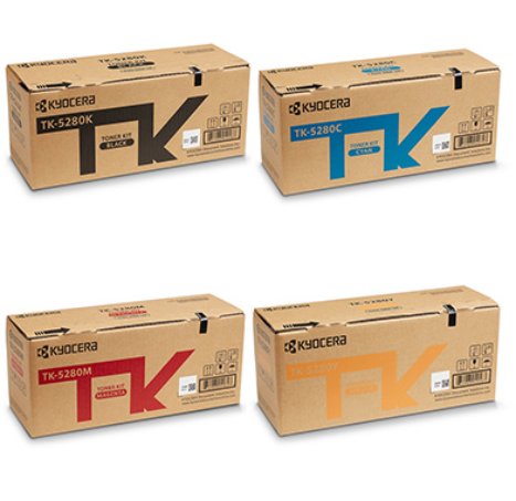 The Kyocera TK-5280 is a series of genuine OEM toner cartridges designed for selected Kyocera ECOSYS monochrome and color laser printers, delivering consistent professional print quality with sharp text and vivid colors. It offers high page yields (black up to about 13,000 pages and color cartridges up to about 11,000 pages at 5 % coverage), making it suitable for medium- to high-volume office printing.